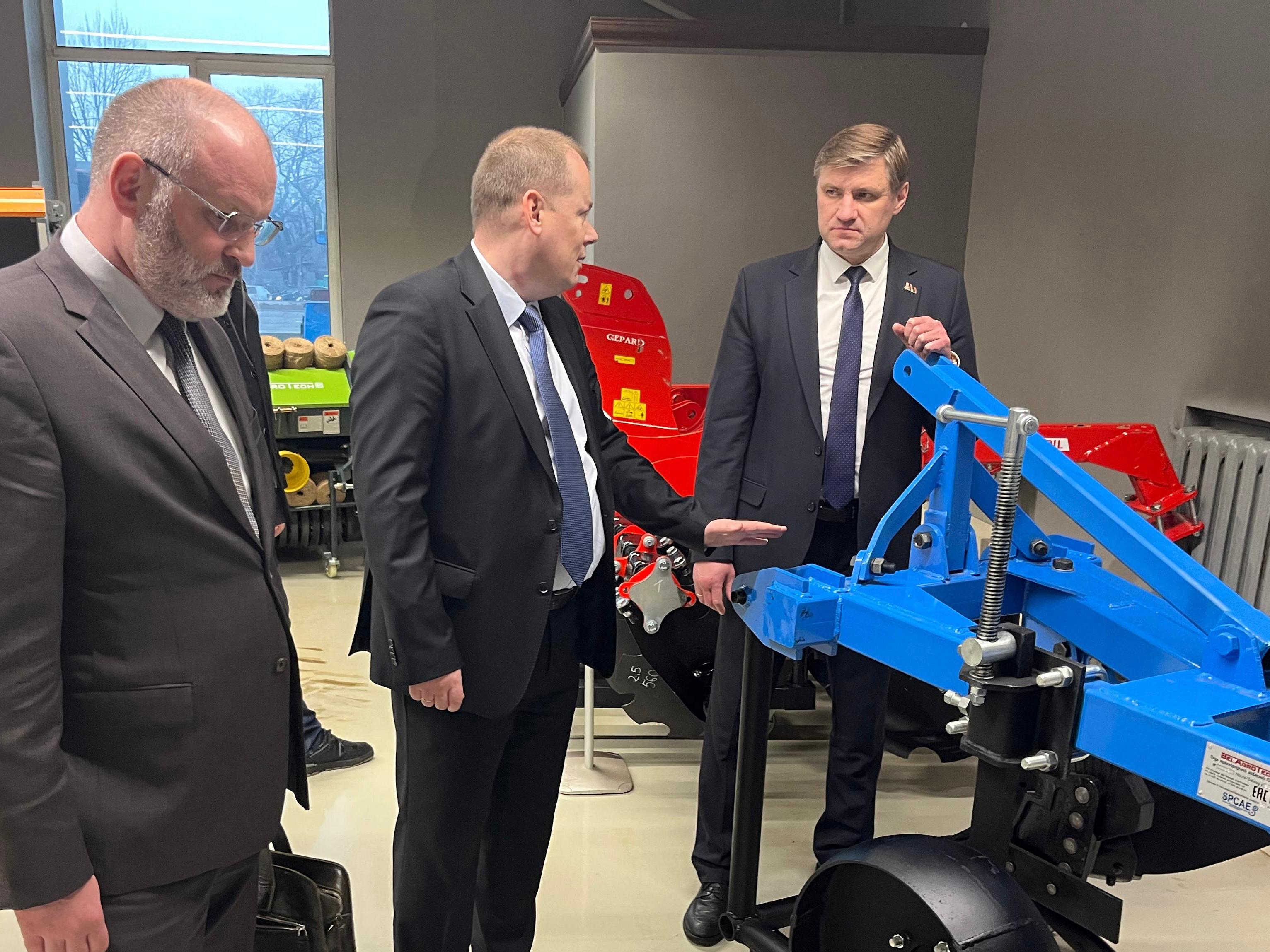 17.02.2026 г.17 февраля 2026 г. в рамках визита в Алматинскую область Чрезвычайный и Полномочный Посол Республики Беларусь в Республике Казахстан Алексей Богданов встретился руководителями Консорциума по производству навесного и прицепного сельскохозяйственного оборудования Андреем Гудко (директор ТОО «Торговый дом Беларус Агро Техника») и Азаматом Бейспековым (Председатель Правления НПЦ Агроинженерии).